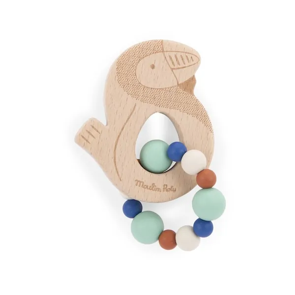 Avec ce beau hochet calao, les enfants pourront soulager leurs poussées dentaires mais aussi jouer !