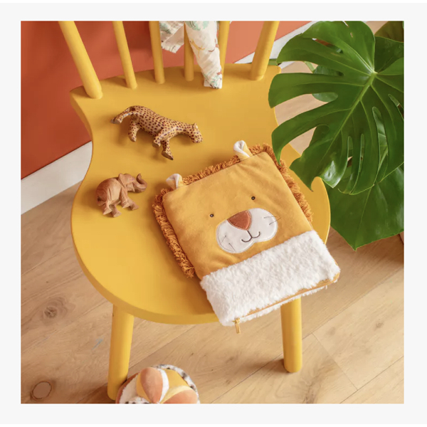 Le protège carnet de santé à l'effigie de Mamba le lion, avec crinière, fourrure et velours est dôté d'une fermeture zippée et de deux compartiments.