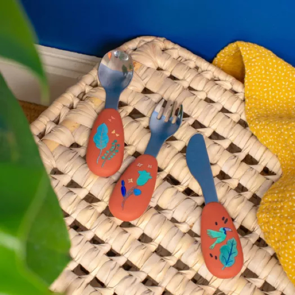 3 couverts en inox et silicone avec une bonne prise main pour que les petits puissent manger comme les grands !