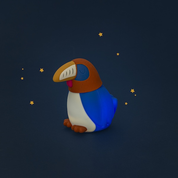 La belle veilleuse Calao répand une lumière apaisante dans la chambre et est aussi une jolie pièce de décoration.