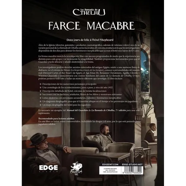 Dans cette course contre la montre, les investigateurs pourront découvrir des secrets enfouis depuis l’Égypte antique, assister à une somptueuse soirée costumée, voir la première du film Häxan (La Sorcellerie à travers les âges), faire la connaissance de personnalités du monde réel (l’archéologue Howard Carter, le roi Fouad Ier d’Égypte, Aga Khan III, le réalisateur Benjamin Christensen, ou même Agatha Christie et Winston Churchill) et retrouver des visages familiers de L’Appel de Cthulhu. Mais ils pourraient aussi passer à côté de tout cela et mettre au jour un autre mystère sur lequel enquêter.