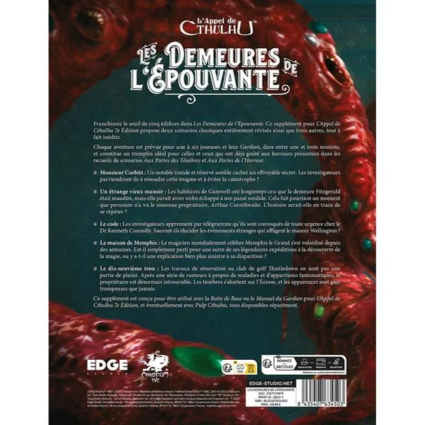 Deux scénarios classiques revisités et trois inédits entraînent les investigateurs dans des ambiances de huis clos.