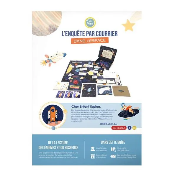 - Mêlant récit, énigmes, illustrations, matériel d’espionnage, l'Enquête par Courrier est un format inédit, à mi-chemin entre l’escape game à la maison, le livre “dont tu es le héros” et l'abonnement littéraire jeunesse.