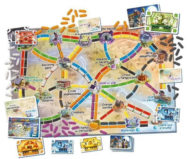 Du Repaire du savant Fou jusqu’à la Maison en pain d’épice en passant par la Grange perdue, vous devrez connecter différents emplacements sur le plateau. Arriverez-vous a récupérer le bonus « Des bonbons ou un sort » ? Pour cela, vous devrez faire preuve de courage. Relier les régions de la Forêt Sinistre aux emplacements du Bord de Mer dans cette atmosphère fantomatique peut être effrayant.
