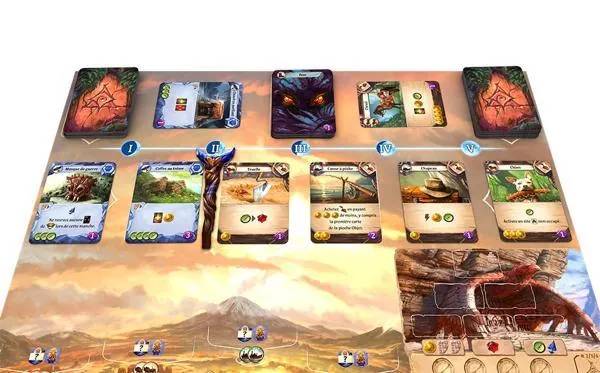 Le jeu prend place sur un plateau de jeu de grande taille recto verso (pour une version avancée encore plus challengeante) et invite les joueurs à mener leurs actions à hauteur de leurs ressources, en leur laissant une grande liberté de gestion. Contrairement à la plupart des jeux de deckbuilding, les cartes acquises sont directement placées sous la pioche pour en maitriser le flux, et les artefacts sont activables dès l’achat pour des effets aussi immédiats que spectaculaires.