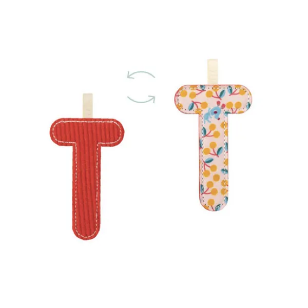 Lettre T en tissu, réversible, qui brille dans le noir.