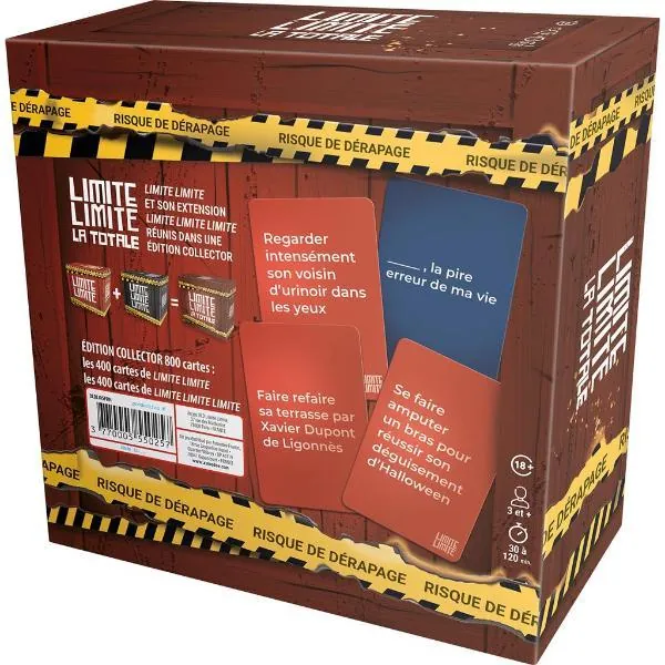 Un délire convivial et hilarant avec 800 cartes dans Limite Limite la Totale, contenant toutes les cartes des deux boîtes adultes.