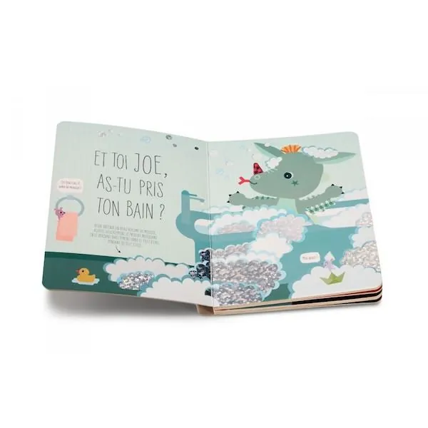 Ils les accompagneront du moment du bain jusqu’à l’heure de s’endormir, sans oublier le brossage des dents et le dernier passage aux toilettes. A chaque page, une nouvelle étape du rituel du soir, ainsi qu’une nouvelle matière amusante est à découvrir.