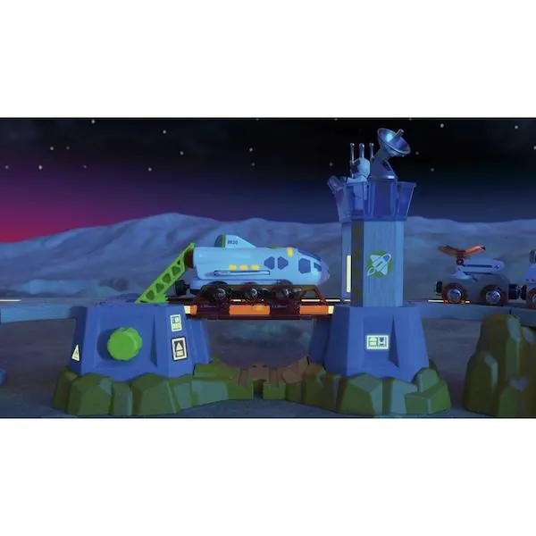 Ce jouet peut se transformer en fusée et en train pour des aventures ferroviaires et spatiales sans fin.