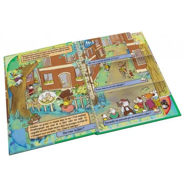 Ouvre le livre et choisis le ou la détective que tu souhaites incarner : Nouki le raton laveur : l'ancienne Pictout ? Jeppy l'ours : le détective costaud ? ou Zoé la souris : l'enquêtrice miniature ? Maintenant, ton aventure peut commencer. Tu vas pouvoir lire ce livre normalement, de gauche à droite, mais rapidement, tu feras face à des choix matérialisés par des pages coupées en trois. Tourne la partie de ton choix et découvre ce qui va se passer. Après plusieurs choix, tu arriveras à la fin de ton aventure… Sauras-tu résoudre le mystère de ce terrible vol !