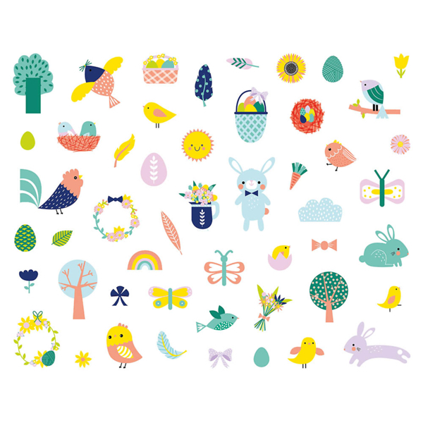 30 décorations à colorier et à suspendre, et 100 autocollants sur le thème de Pâques !