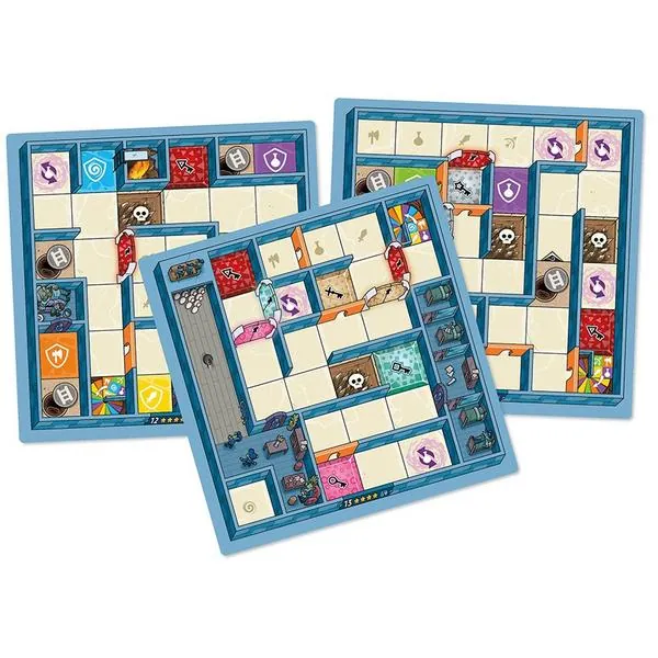 Dans Magic Maze Tower, les héros se rendent (parfois) d’abord dans leur armurerie de prédilection avant de (toujours) s’enfuir par une case de sortie commune ou propre à chacun.