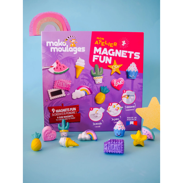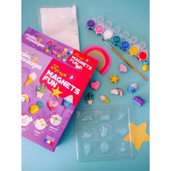 Atelier créatif complet pour fabriquer soi-même 9 magnets personnalisées, à mouler et à peindre !
