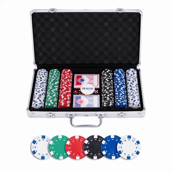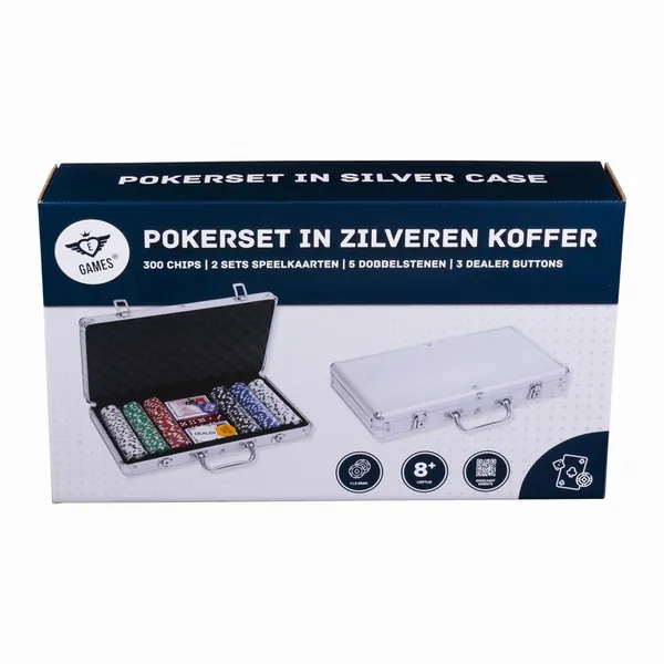 Mallette de poker dans une boîte métallique argentée, avec 300 jetons.