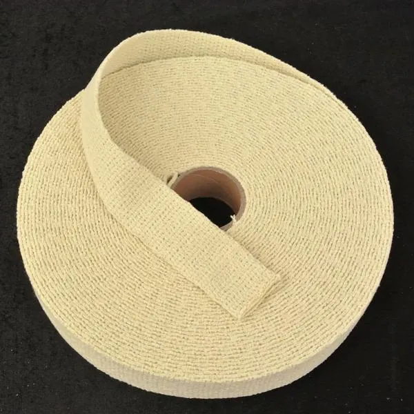 Mèche de feu plate renforcée largeur 2 cm. Tressage de fils de laiton au coeur de la fibre. Vendue au mètre.