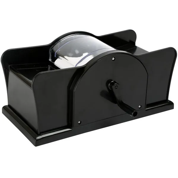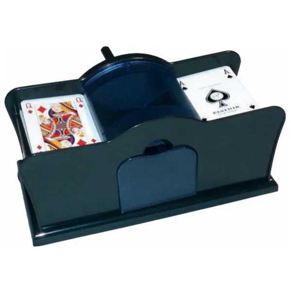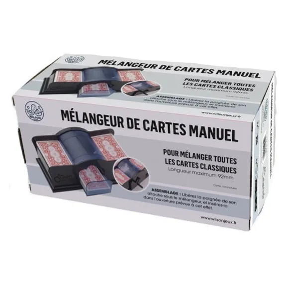L'accessoire indispensable et amusant pour mélanger les cartes. Séparez le paquet en 2 piles égales, tournez la manivelle et hop, c'est mélangé ! Compatible avec les tous jeux de cartes au format classique, bridge et poker.
