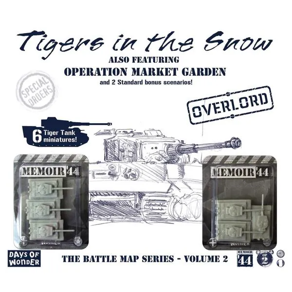 Le deuxième volume dans la série des Battle Maps Mémoire 44 contient 2 scénarios Overlord, six figurines de chars Tigre et 2 scénarios bonus.