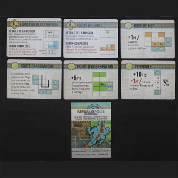 Micro Extension Megalopolis permet de regrouper les 6 mini-extensions du jeu Mégalopolis dans un format très réduit pour faciliter le transport.