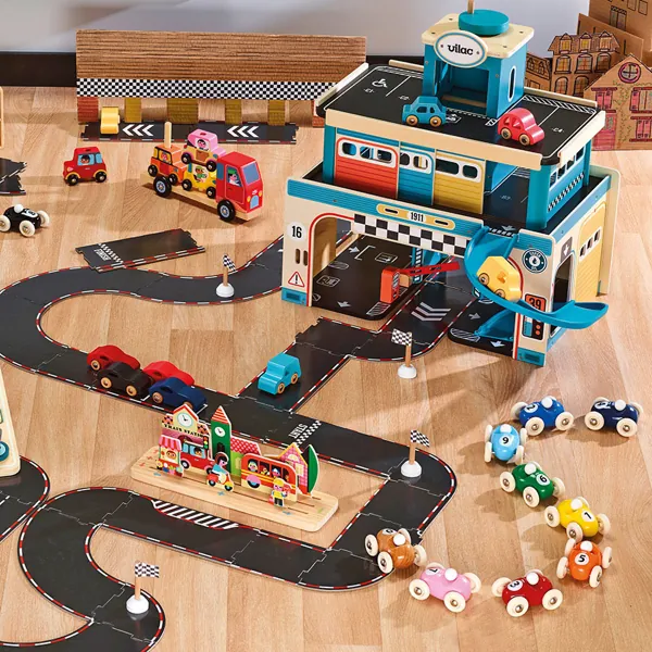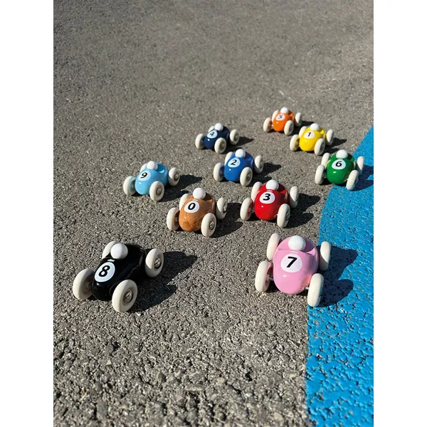 Voiture fabriquée en bois massif avec laquage artisanal.