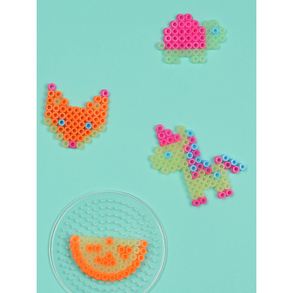 Un coffret complet pour réaliser de magnifiques créations en perles à repasser, avec des perles qui brillent dans le noir !