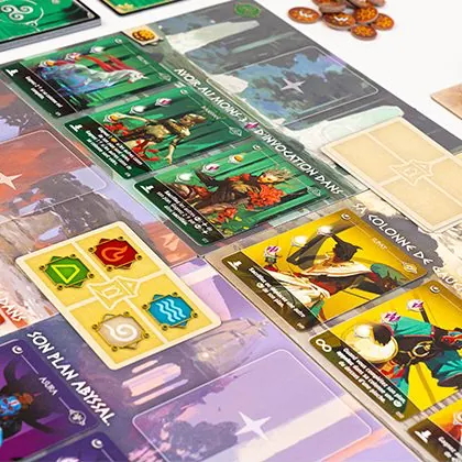 Dans Mythologies, vous explorez les croyances des grandes civilisations du monde. Choisissez les bonnes cartes, déclenchez des pouvoirs, relevez des épreuves et placez vos entités au bon endroit pour récolter des gemmes et gagner des faveurs.