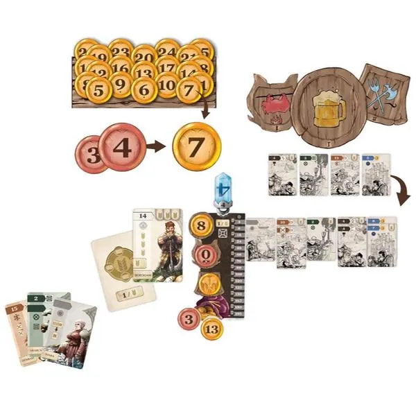 A chaque tour, placez des mises face cachées pour recruter les meilleurs Nains de différents Ordres : Bouclier, Forge, Talion, Temple et Errants. Chaque ordre a une mécanique de jeu et une façon de marquer des points qui lui est propre. Le jeu repose sur un système de "coin building" c'est à dire d'amélioration de ses pièces au fur et à mesure du jeu vous permettant de recruter les nains de votre choix.