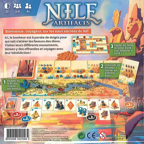 Lorsque les offrandes sont terminées, les navires retournent sur le Nil pour voyager en sens inverse et ramasser de nouveaux artefacts. Une fois que la pioche des monuments est vide, le joueur ayant le plus de points de victoire gagne !