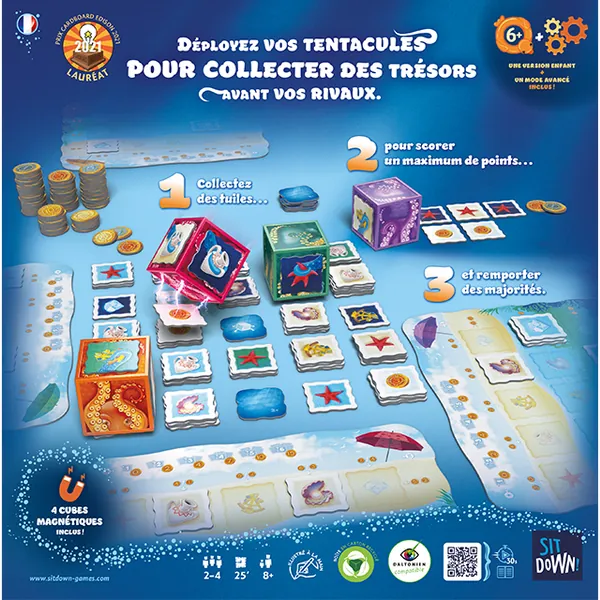 En cours de partie, marquez des points chaque fois que vous videz les faces de votre cube et, en fin de partie, remportez des majorités pour augmenter votre score.