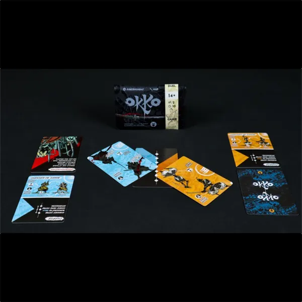 Dans Okko, chaque joueur possède une main de cartes représentant des mouvements, des attaques ou des attaques spéciales sur le champ de bataille. Au début de chaque tour, chaque joueur place deux cartes de sa main face cachée à côté du champ de bataille, après quoi il résout les actions une carte à la fois.