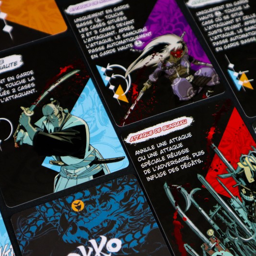 Avec les cartes, les joueurs avancent ou reculent par rapport à l'adversaire ou frappent haut ou bas, en essayant de causer des dégâts.