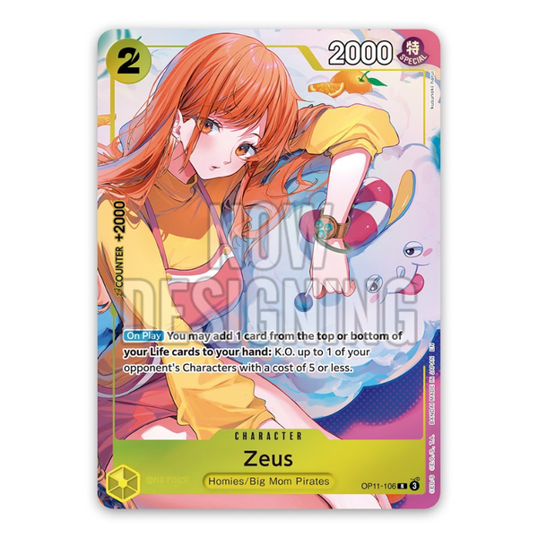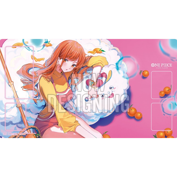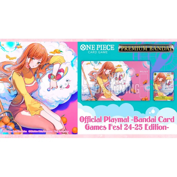 Tapis de jeu officiel One Piece Card Game pour commémorer le "Bandai Card Game Fest 24-25", avec Nami et Zeus.
