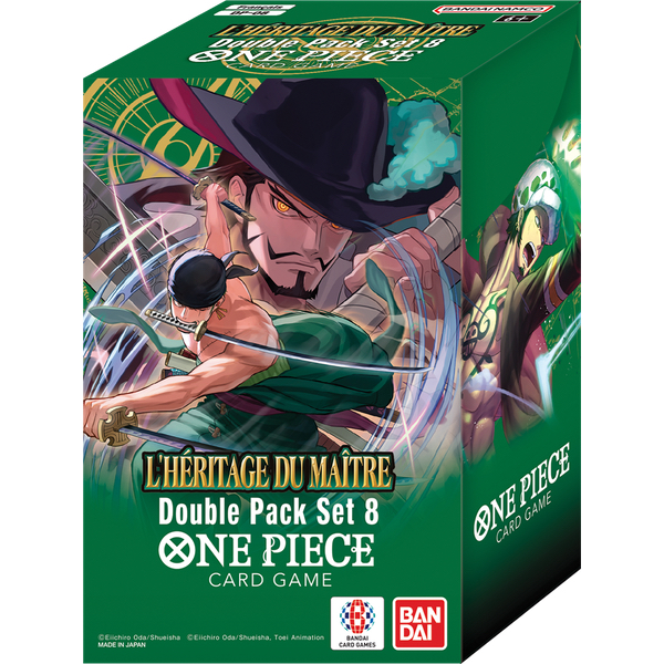 Avec chaque pack de 2 boosters, découvrez "L'héritage du maître", l'OP-12 du jeu de cartes à collectionner One Piece. Ce set met l’accent sur les relations entre les maîtres et leurs apprentis, à l'instar de Zeff et Sanji. Votre double pack contient aussi 1 carte Don!!! au design exclusif. Réutilisez aussi son emballage comme boîte à cartes.