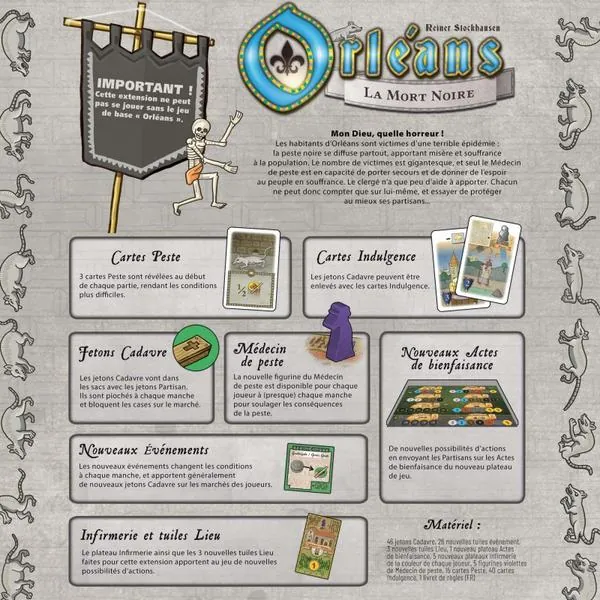 Avec l'extension La Mort Noire, Orléans s'enrichit de nouveaux événements, qui ajoutent à (presque) chaque manche des jetons Cadavre dans la population, vous apportant de nouveaux défis.