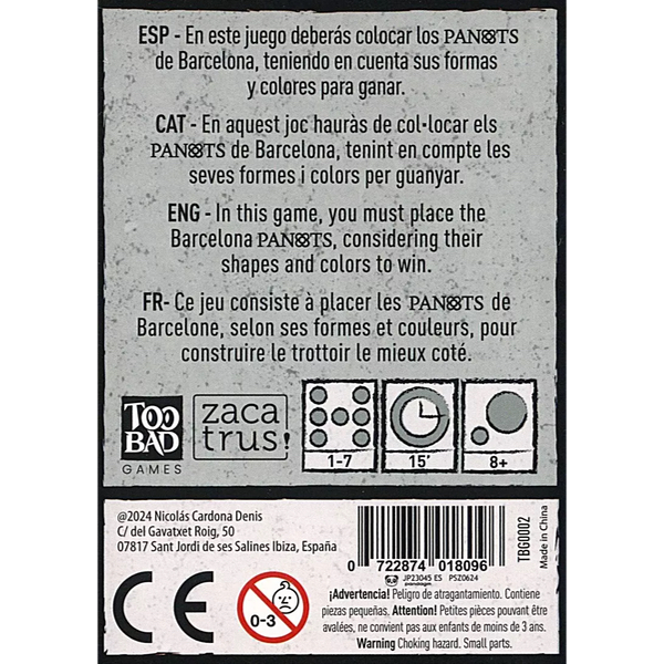 *Le panot est une dalle faite de ciment, de sable et d'eau, utilisée pour créer des motifs décoratifs sur les trottoirs. Dans ce jeu, les panots prennent vie et couleur, rendant hommage à ce symbole de Barcelone !