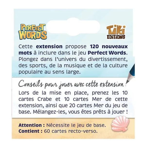 Cette extension propose 120 nouveaux mots à inclure dans le jeu Perfect Words. Plongez dans l’univers du divertissement, des sports, de la musique et de la culture populaire au sens large.