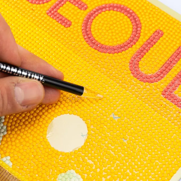 La toile sur laquelle les gemmes sont appliquées est soutenue par une tablette rigide pour permettre une adhérence parfaite des gemmes.