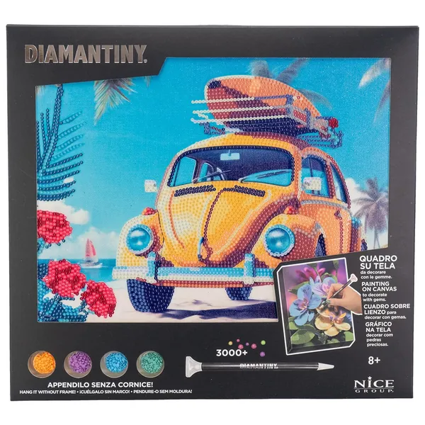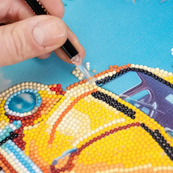 La toile sur laquelle les gemmes sont appliquées est soutenue par une tablette rigide pour permettre une adhérence parfaite des gemmes.