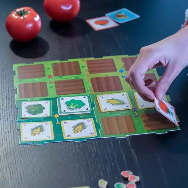 Si vous créez un alignement d’au moins 3 légumes identiques, vous déclenchez alors la récolte. Chaque joueur récolte les légumes correspondants à l’alignement, et le place près de lui.