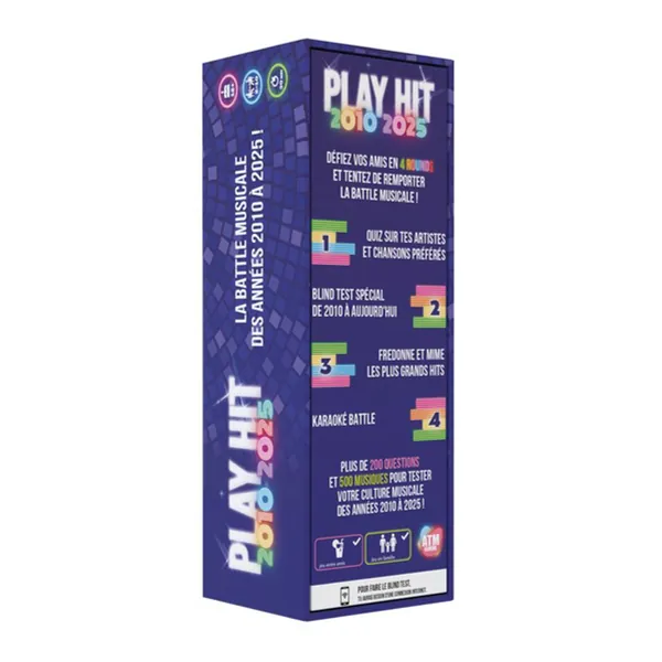 En 4 manches, affrontez-vous en équipe et répondez à un maximum de questions sur les hits français et internationaux des années 2010 et 2020. Play Hit 2010-2025 reprend les codes qui ont fait le succès de Play Hit avec son format en 4 manches, cette fois en se portant sur les tubes de 2010 à 2025.