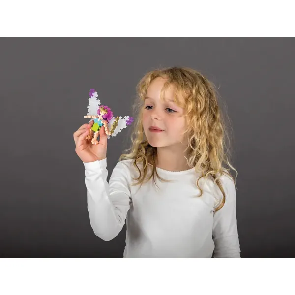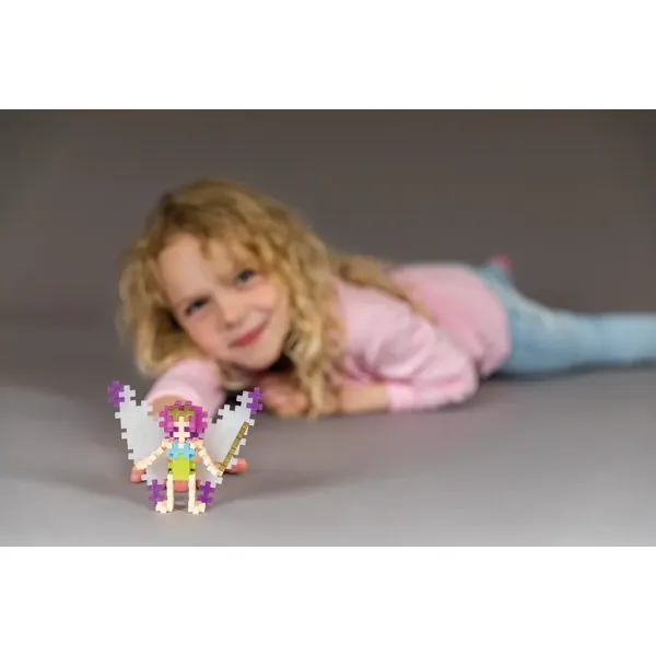 100 pièces de Plus-Plus CLASSIC (20 mm) et une notice de construction pour aider les enfants dans la création d’une jolie petite fée.