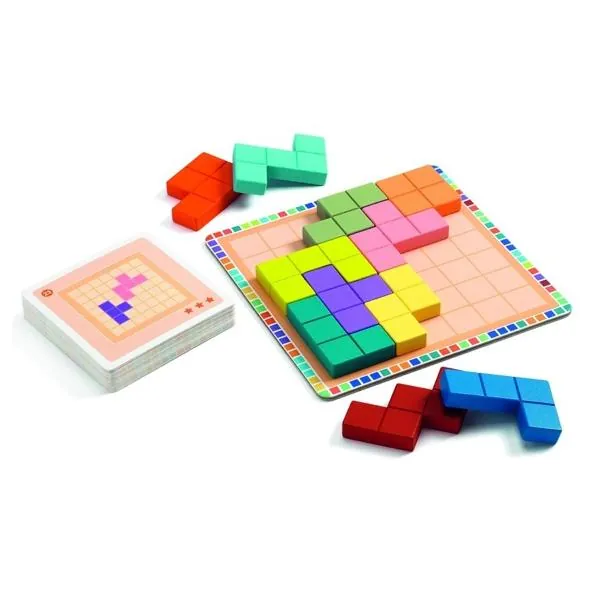 11 pièces en bois pour reconstituer un carré parfait et 30 cartes de défis avec des positions de départs imposés.