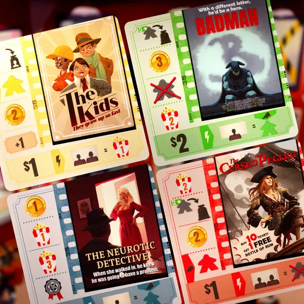 Le jeu se déroule en neuf manches, au cours desquelles vous devrez composer avec les attentes du public. Chaque session commence par un tirage de spectateurs depuis votre sac : positionnez-les judicieusement dans votre salle pour activer des effets spéciaux et booster vos revenus. Associez-les aux bons films pour obtenir des bonus supplémentaires : argent, nouveaux spectateurs, effets publicitaires, ou même la possibilité de perturber la concurrence !