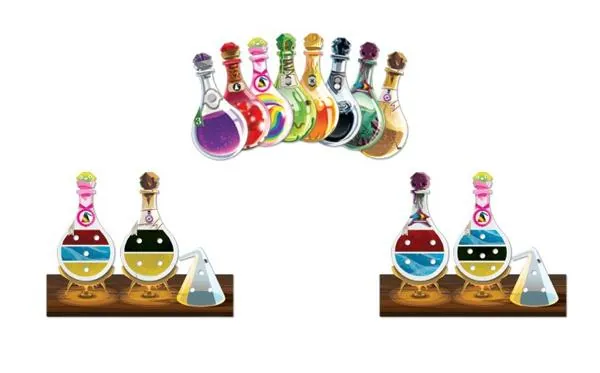 Quand un joueur finit 3 Potions de même pouvoir ou 5 Potions de 5 pouvoirs différents, il reçoit un jeton Compétence, qui vaut 4 points.