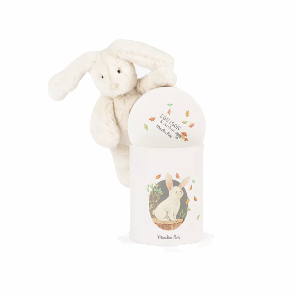 Un tendre lapin, tout doux et moelleux pour des câlins extraordinaires ! Il peut se transporter partout grâce à sa taille idéale pour les bras des tout-petits.