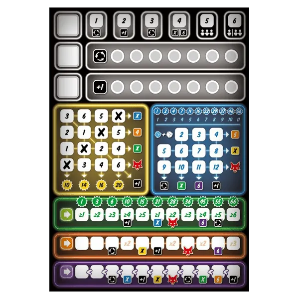 Chaque partie de votre grille correspond à un dé spécifique et à une façon de scorer particulière. Chaque lancé de dés sera donc l'occasion d'un choix stratégique, et vous donnera accès à des bonus. Mais attention, les dés que vous ne choisissez pas pourront être utilisés par vos adversaires.