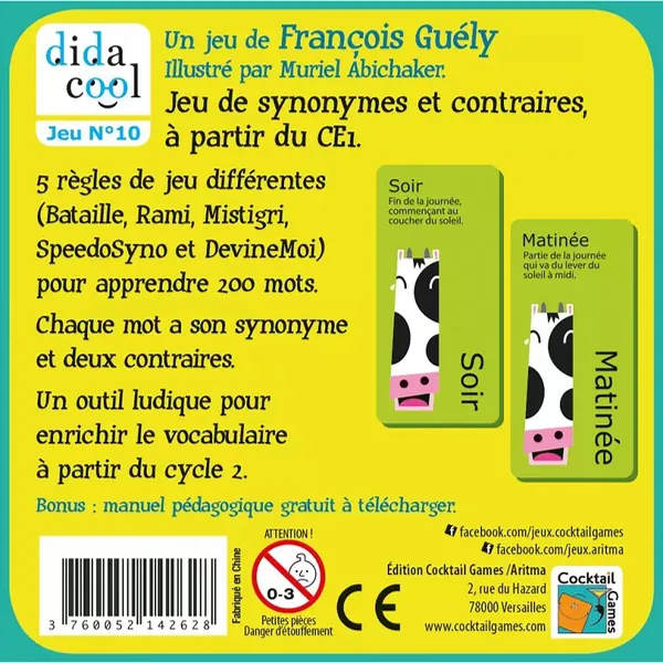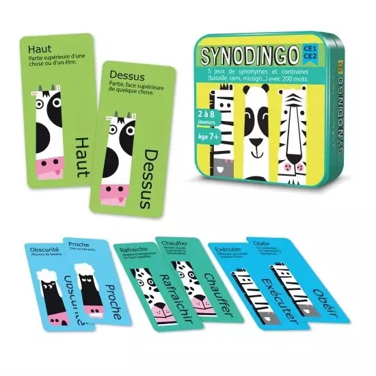 - 103 petites cartes réversibles (3,8 x 8 cm) pour 6 niveaux de difficulté et 200 mots