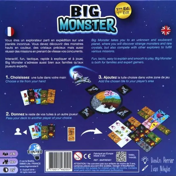 Big Monster vous projette à la découverte d’une planète inconnue haute en couleur, sur laquelle vous allez découvrir des monstres étranges, des cristaux rares mais aussi remplir des missions pour lesquelles vous êtes en compétition en solo ou par équipes.
