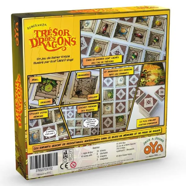- 49 tuiles : 26 trésors, 8 diamants, 12 dragons, 3 araignées