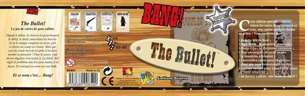 La Bullet contient Bang! le jeu de base, les extensions High Noon, Dodge City et Pour une poignée de cartes en plus, 2 nouvelles cartes pour High Noon et trois personnages inédits, une étoile de shérif, un livret de règles.