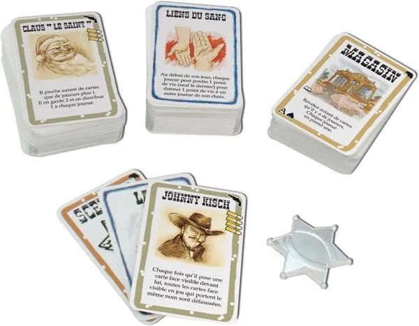 Bang! the Bullet réunit les extensions High Noon , Dodge City et Pour une poignée de cartes en plus, avec une étoile pour le shérif dans une balle géante pour égayer les ludothèques !